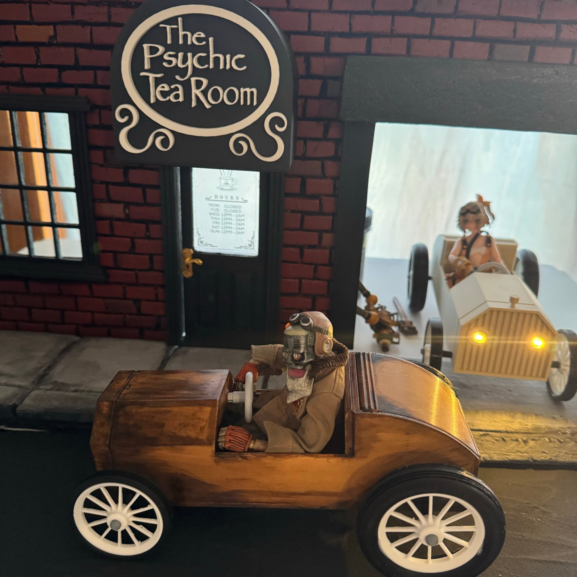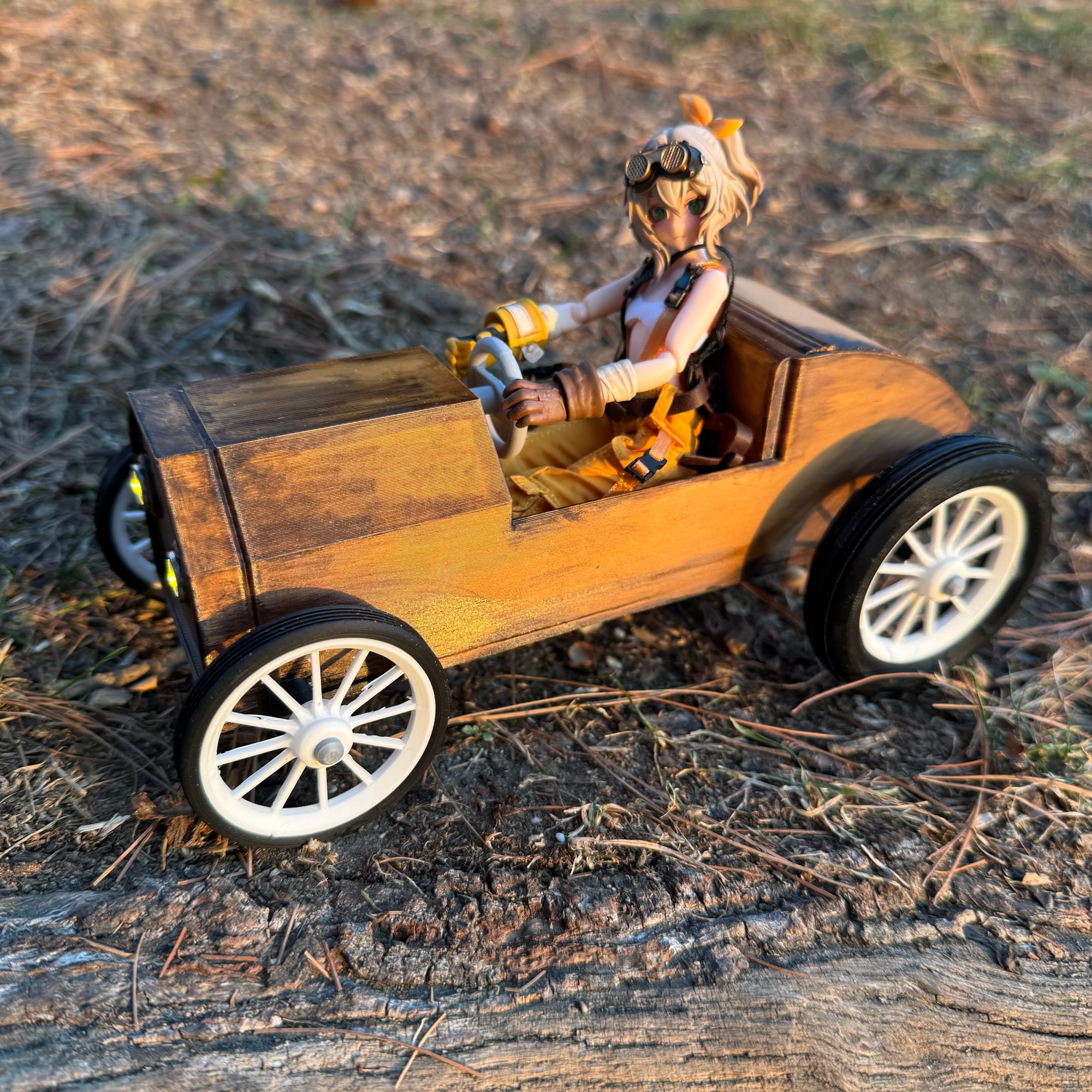- Car is made of wood PLA (white oak)
